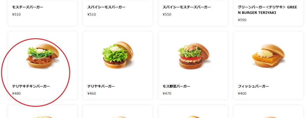モスバーガーでは照り焼きバーガー、てりやきバーガー⁉、テリヤキバーガー